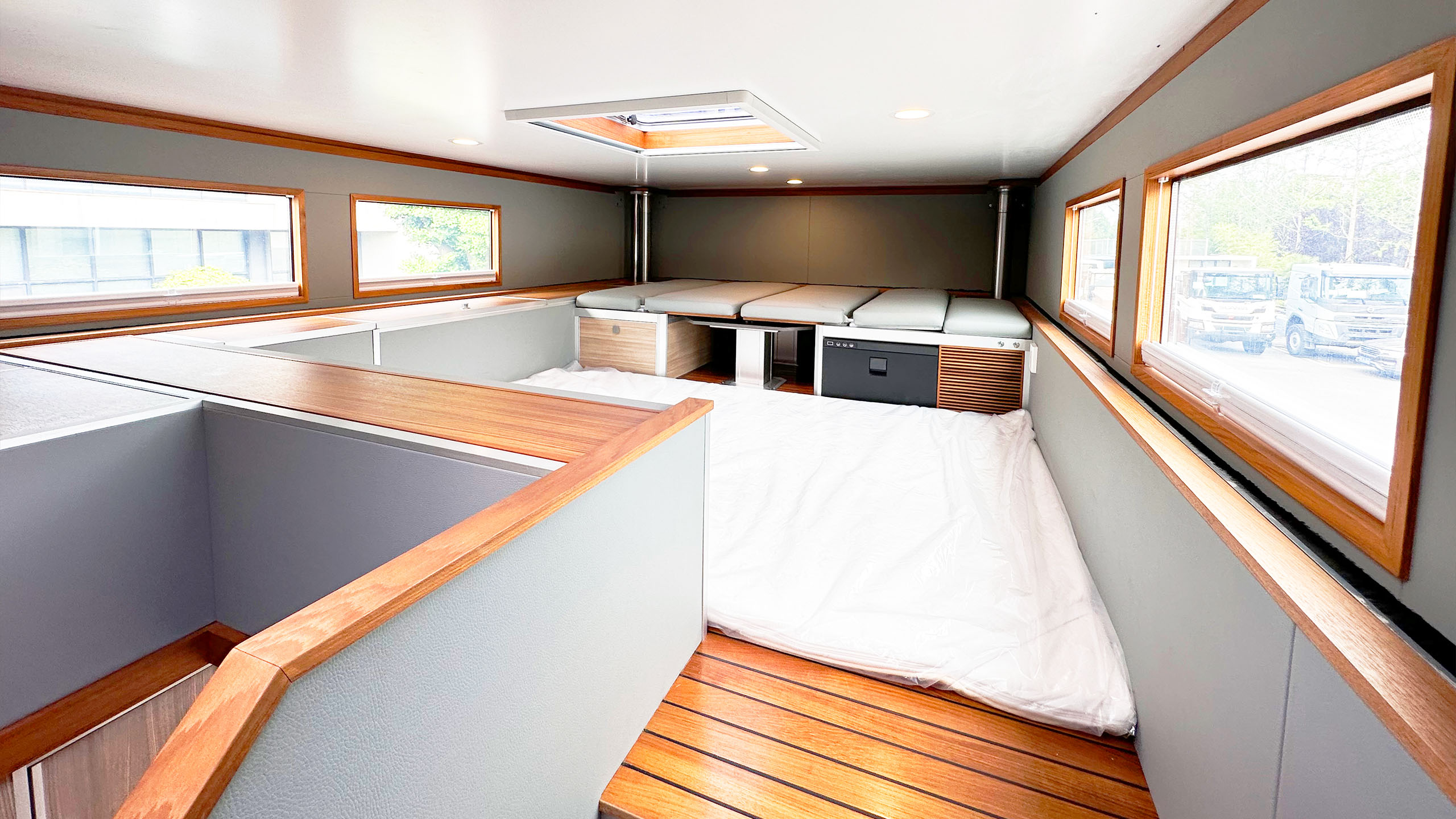 二层可升降空间,拥有榻榻米区和多功能卡座沙发,可拼成2000×750mm沙发床。
