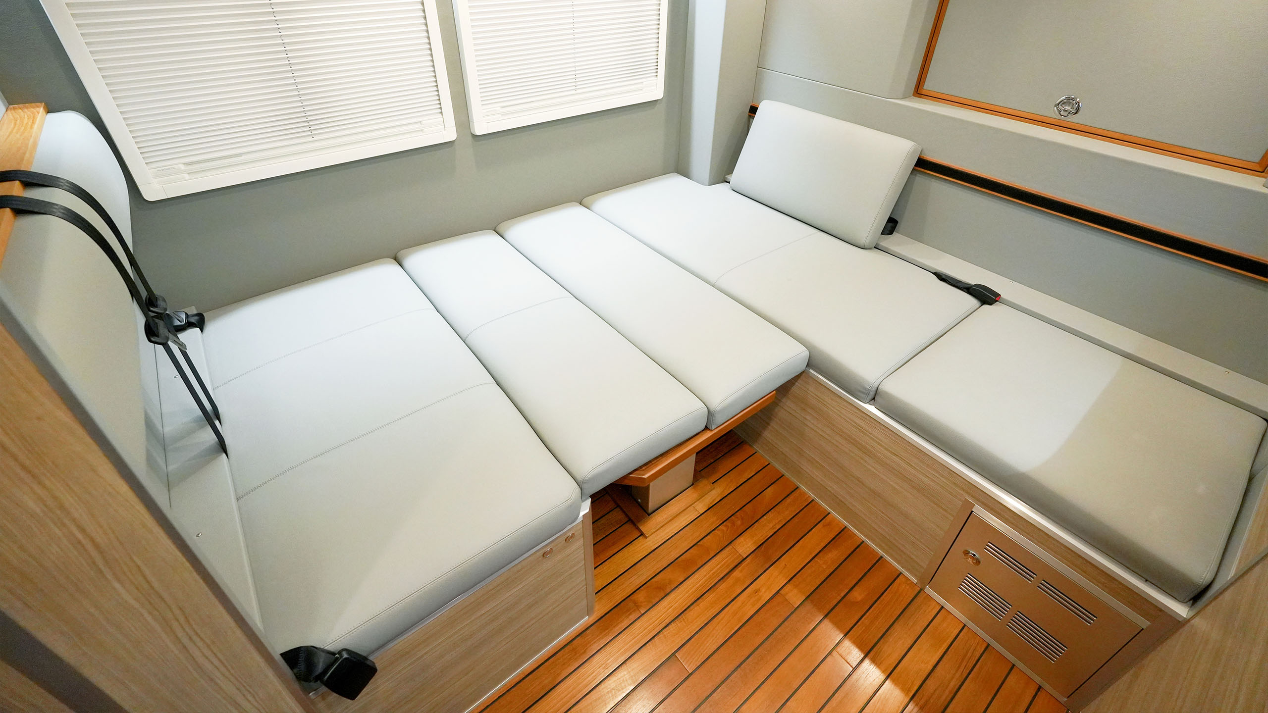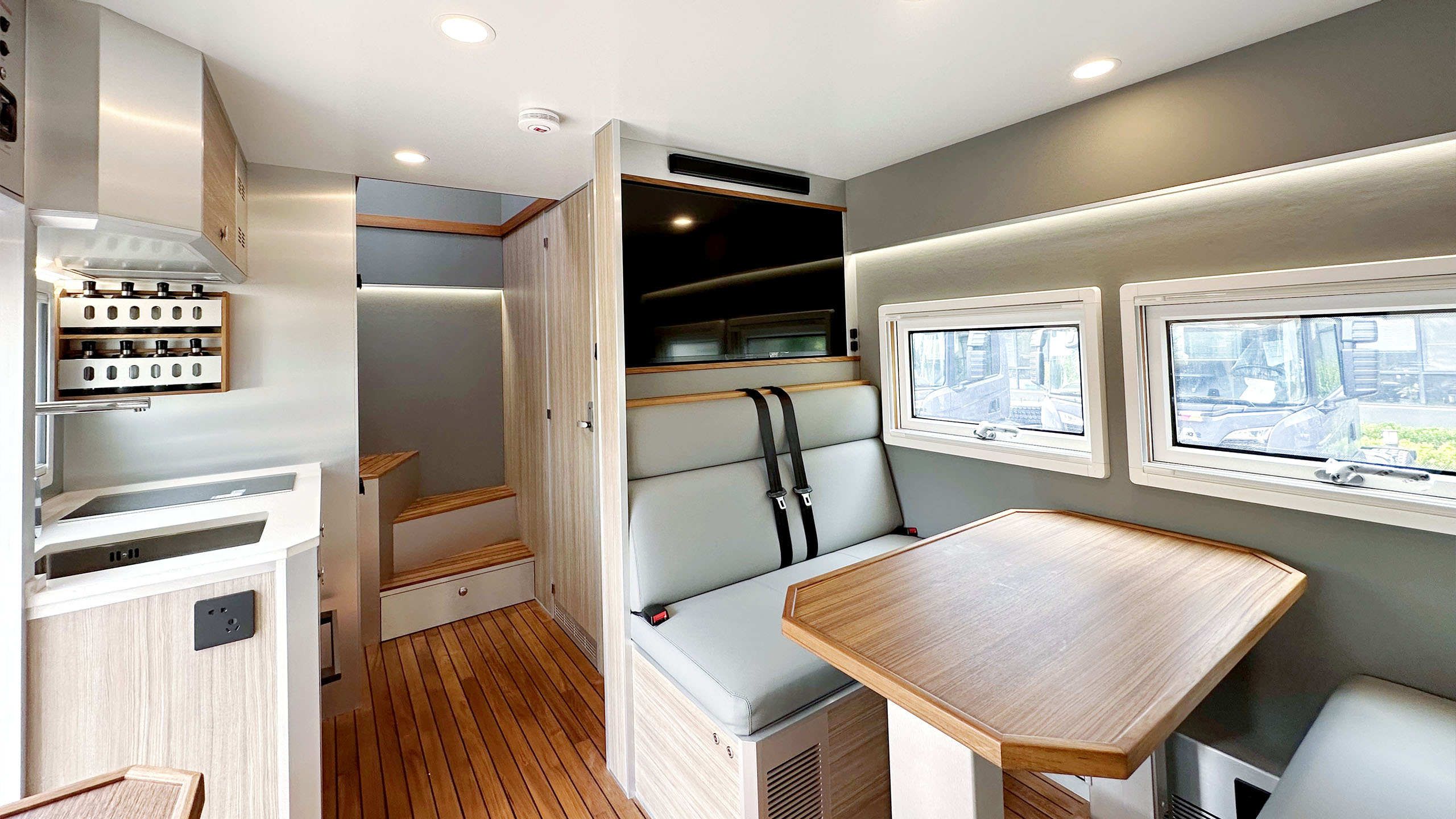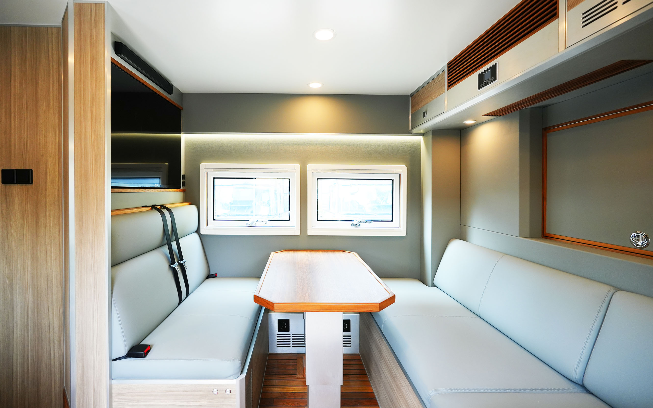 客厅的卡座沙发配上柚木升降桌,可以组合成2,000x1,070mm双人床,乳胶沙发垫给你舒适睡眠。