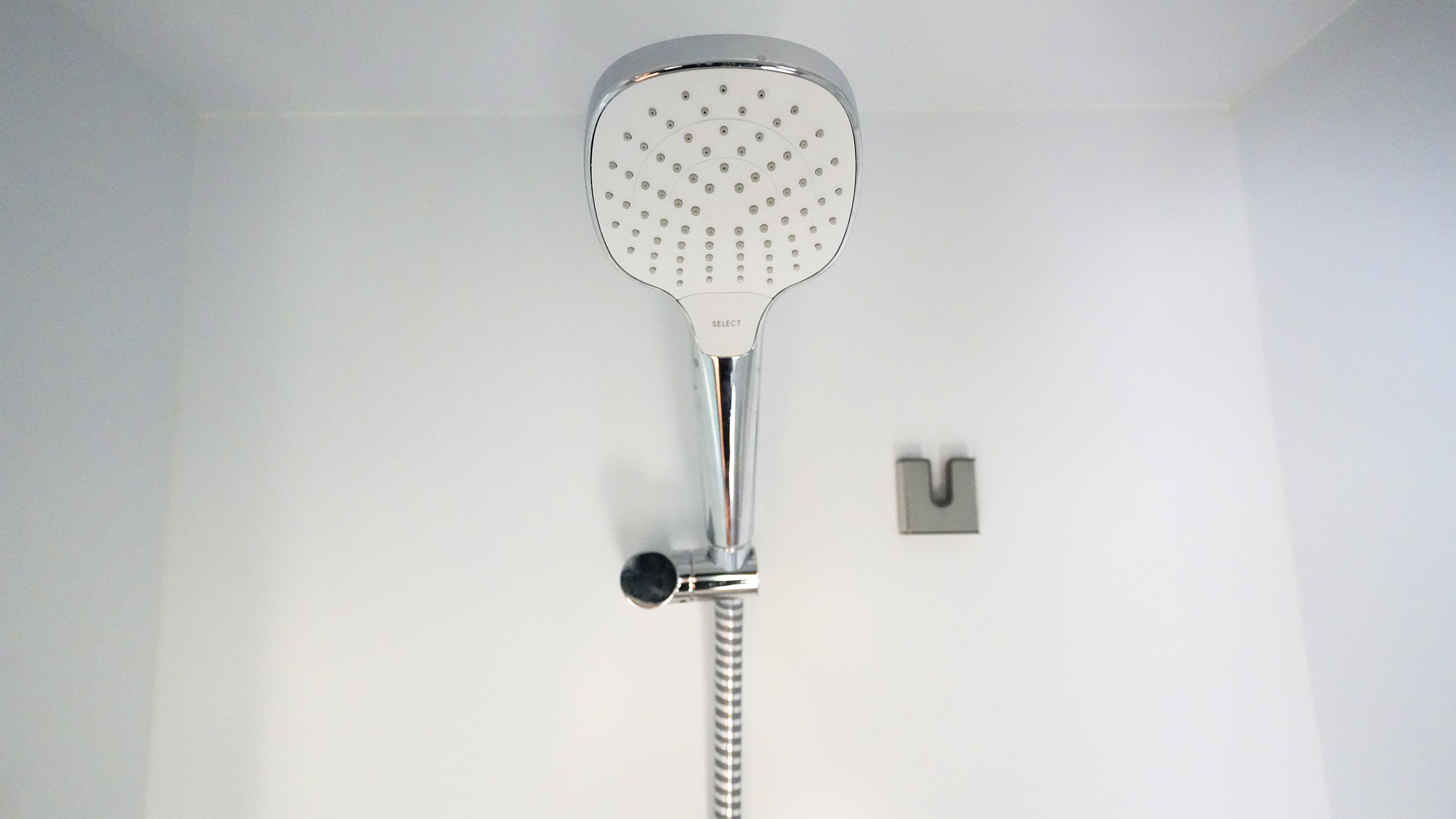 洗手台、电动粉碎马桶以及淋浴区经过巧妙排列,使得每个区域都能高效利用,各得其所。