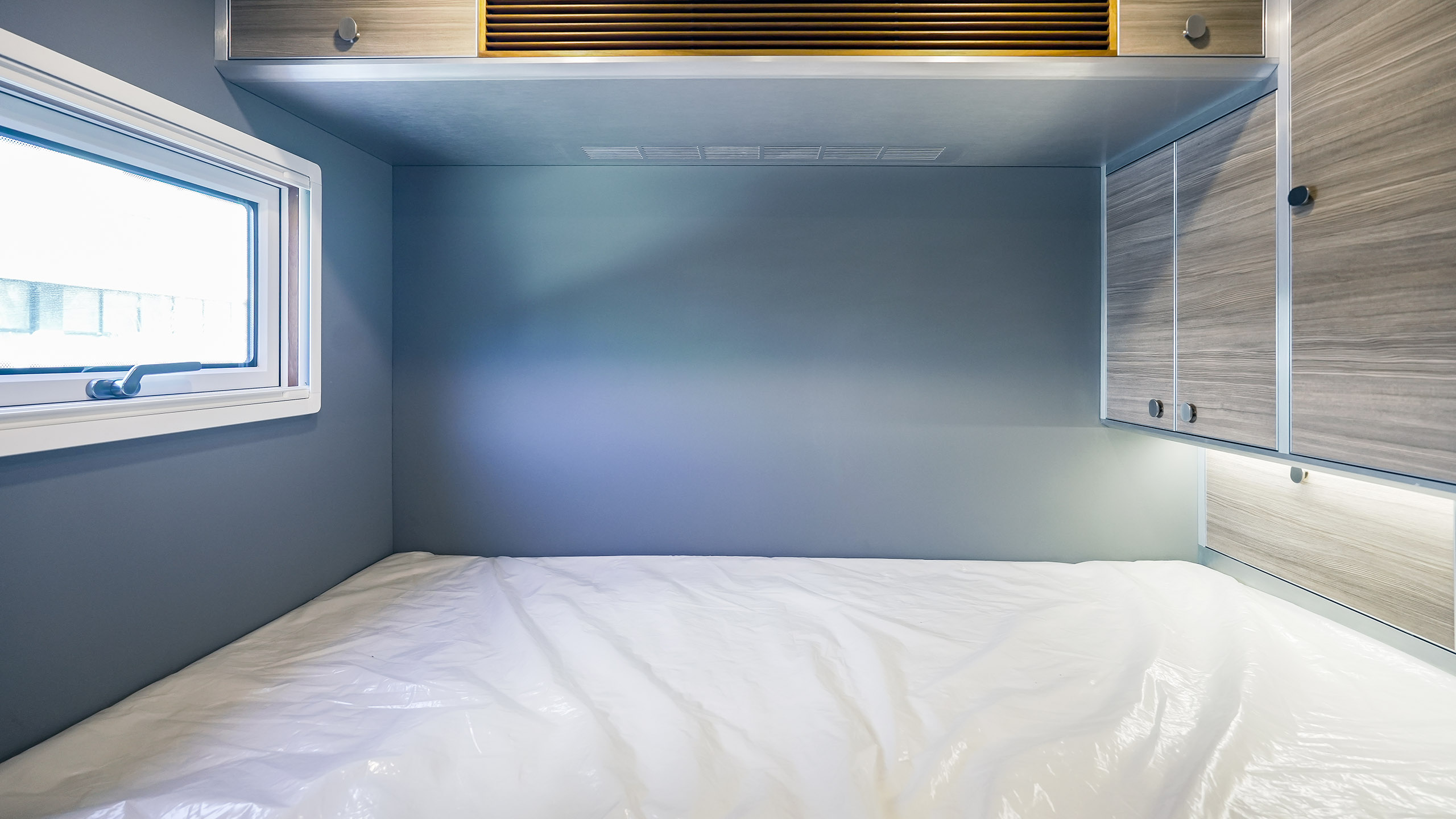 车厢尾部的独立主卧设计独具匠心,配备了2000×1400mm的双人大床,搭配高品质的乳胶床垫,每晚都能拥有甜美的梦乡。