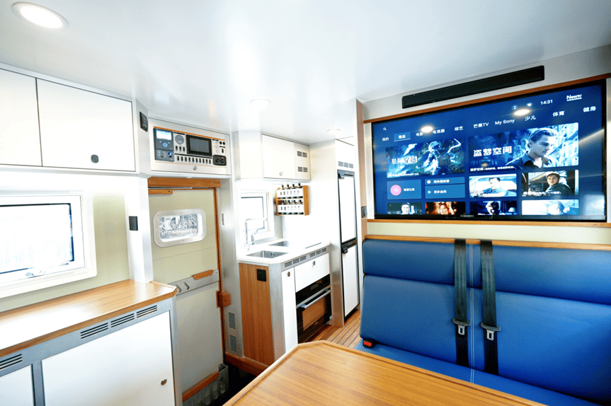 在娱乐配置方面,“穿越者SX”展现出了超前的水准。下层空间配备日本品牌液晶电视机和美国品牌音响系统,带来沉浸式的影音体验。