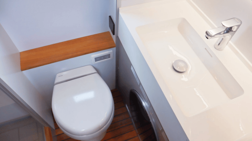 将法国品牌全陶瓷电动粉碎马桶、德国汉斯格雅自动恒温混水器及花洒、韩国品牌嵌入式全自动滚筒洗衣机(带烘干)等功能完美整合。