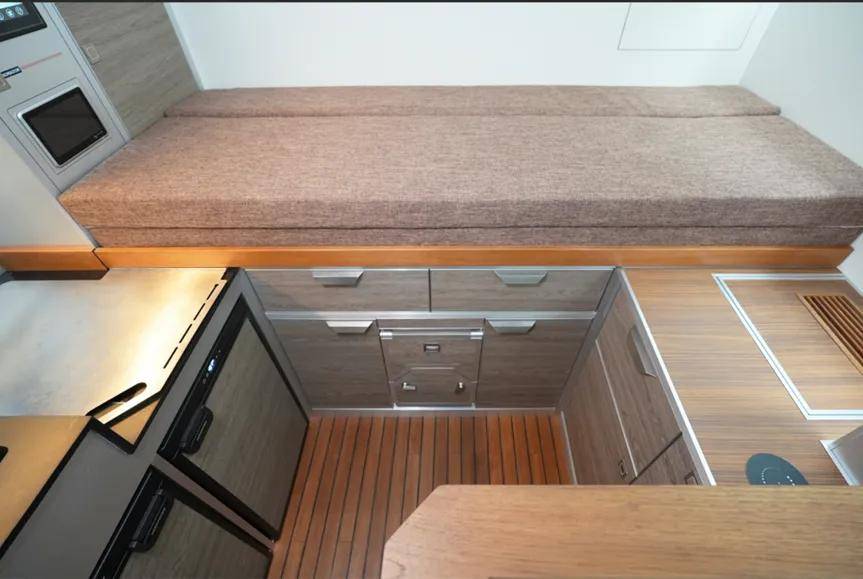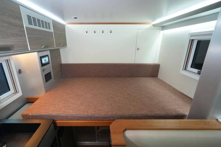 让人佩服的是设计团队的取舍智慧,为了保留顶部天窗的采光优势,他们特意取消了以往移动居所中常见的客厅顶部电动升降床。