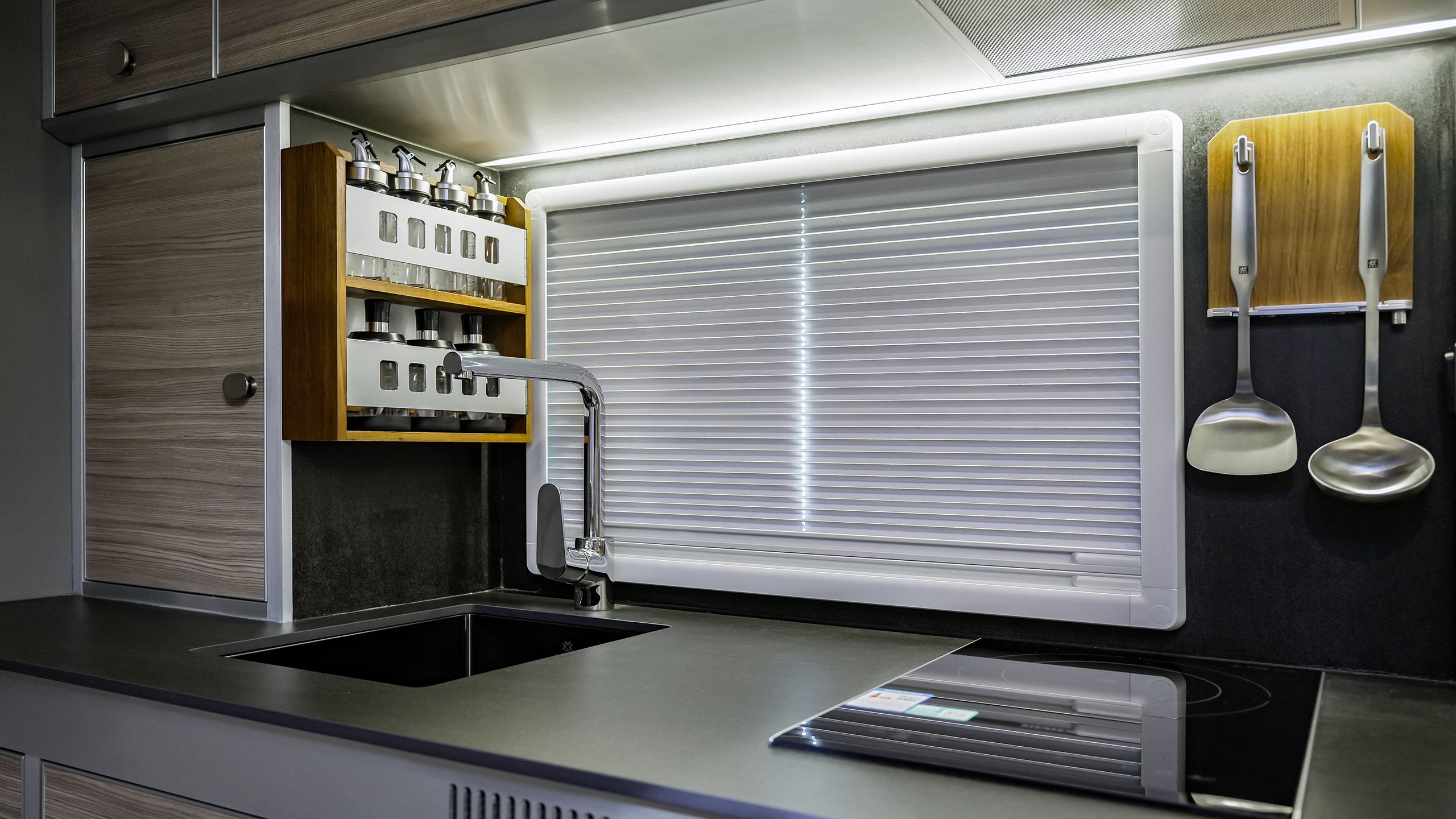 车厢尾部的独立主卧设计独具匠心,配备了2000×1400mm的双人大床,搭配高品质的乳胶床垫,每晚都能拥有甜美的梦乡。