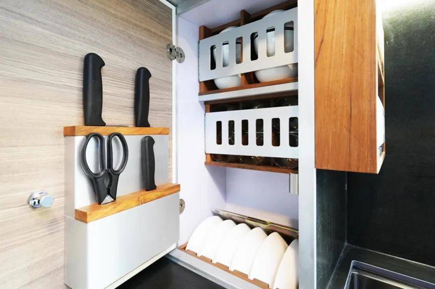 餐具、厨具、刀具规整收纳,细节之处尽显品质与格调。152L 分体嵌入式冰箱、