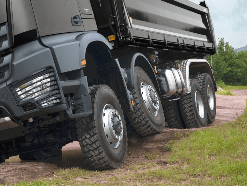 “领航者BX”选用的梅赛德斯-奔驰Arocs 4152 8×8底盘系统,通过全时八轮驱动与多把差速锁的协同,
