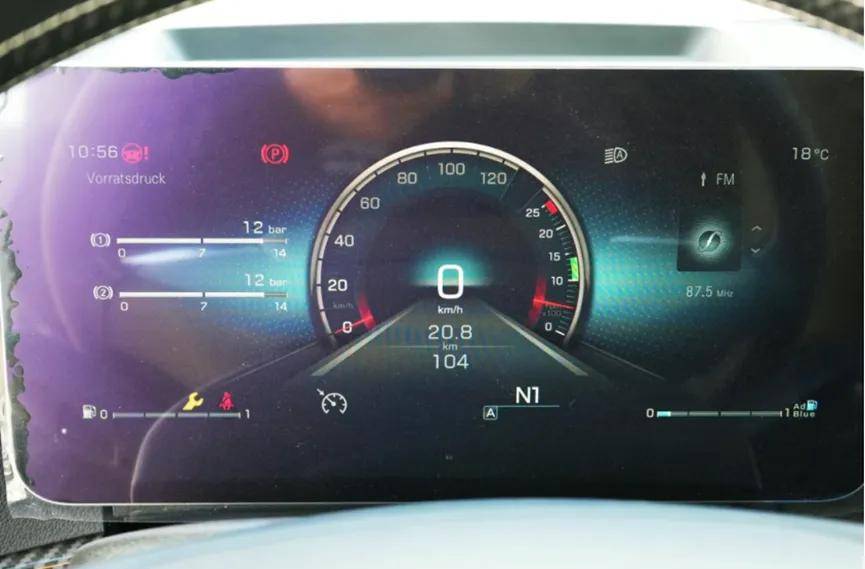 车辆数据显示采用全数字化仪表界面,由两块12.3英寸显示屏构成视觉连贯的双屏系统,