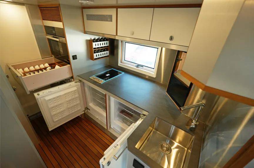 从客厅转过身来到车厢中部,便是“领航者BX”的标准厨房。